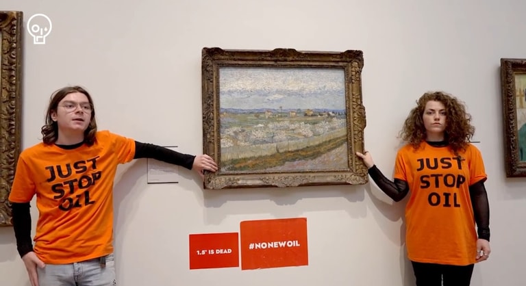 在過去一年半中,為了提高氣候變遷議題的關注程度,環保行動者們盯上許多藝術家的作品。光是在去年,全球就曾發生10起以上「名畫攻擊事件」,梵谷(Vincent Van Gogh)、莫內(Oscar-Claude Monet)、安迪・沃荷(Andy Warhol)的名作都曾面臨威脅。