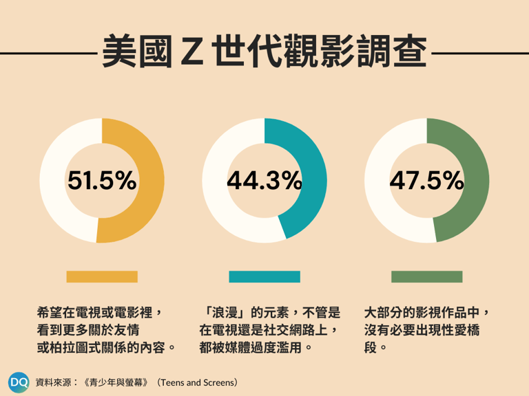 根據加州大學洛杉磯分校(UCLA)的《青少年與螢幕》(Teens and Screens)研究報告指出,現在年齡落在13歲至24歲的Z世代,51.5%希望在電視或電影裡,看到更多關於友情或柏拉圖式關係的內容。