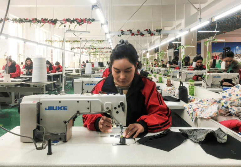 中國的服裝產業主要集中在東部沿海,由於當地工資上漲,導致國際大品牌紛紛外移越南或孟加拉等地。自九○年代以降,中央政策的規劃者始終認為,若將紡織業重心遷到離新疆棉田不遠的地區並利用當地廉價的農村勞動力,就能讓中國紡織品變得更有競爭力。
