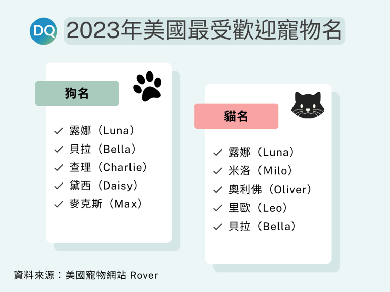 許多人在為寵物取名,也會取自珍愛的事物,以茲紀念。2023年,伊隆馬斯克(Elon Musk)宣布將推特(Twitter)改名為X後,將狗取名為推特的比例大幅上升至247%。因此,在榜上看到伊隆(Elon)和馬斯克(Musk)成為流行趨勢,分別上升11%和47%,就一點也不奇怪了。