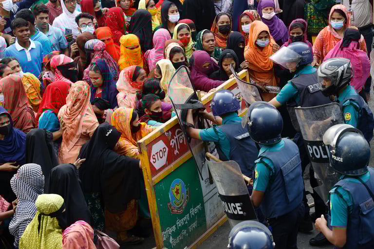 為時數週的抗議活動中,許多工人走上街頭,在高速公路上遊行示威,還有至少有70間成衣工廠遭工人洗劫。工人與警方爆發激烈衝突,警方表示,由於工人試圖封鎖道路,且向警方投擲磚塊和石頭,還在街道上點火,「我們不得不發射催淚彈、橡皮子彈來驅散他們。」