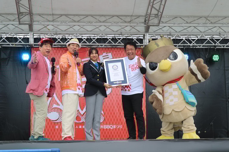 另一個金氏世界紀錄,則在日本沖繩縣的石垣市誕生。石垣市政府為了慶祝該市人口達到5萬人,於11月18日舉辦「石垣島大烤肉祭」,邀請2,220人一起烤肉,創下「同一場地最多人同時烤肉」的紀錄。