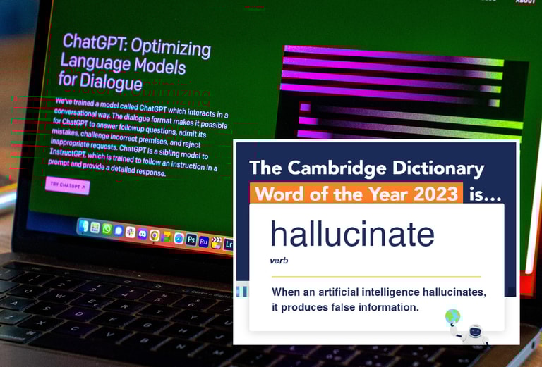 Hallucinate原義為「似乎看到、聽到、感覺到或聞到」一些不存在的東西,通常是因為健康狀況或服用藥物導致的幻覺。如今,由於今年的AI熱潮,Hallucinate多了一個額外含義:「因AI出現幻覺,而產生的錯誤虛假訊息。」劍橋詞典出版經理尼科爾斯(Wendalyn Nichols)表示: