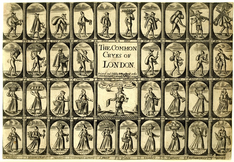 相較於在鄉間農場與其他女性一同參與製乳過程,牛奶女工以年輕女性之姿,獨自遊走城市街頭販售乳品的形象,與十七世紀以來的版畫再現有著密切關聯。在大眾印刷文化中,牛奶女工的早期形象多與其他人物一同出現於類圖鑑的版畫,特別是羅列各式販夫走卒的叫賣圖之中。例如,在十七世紀上半葉出版的〈倫敦常見叫賣〉木板刻劃中,牛奶女工的形貌樸素、面容模糊,和途中其他行業的小販在衣著、樣貌上並無顯著差異。