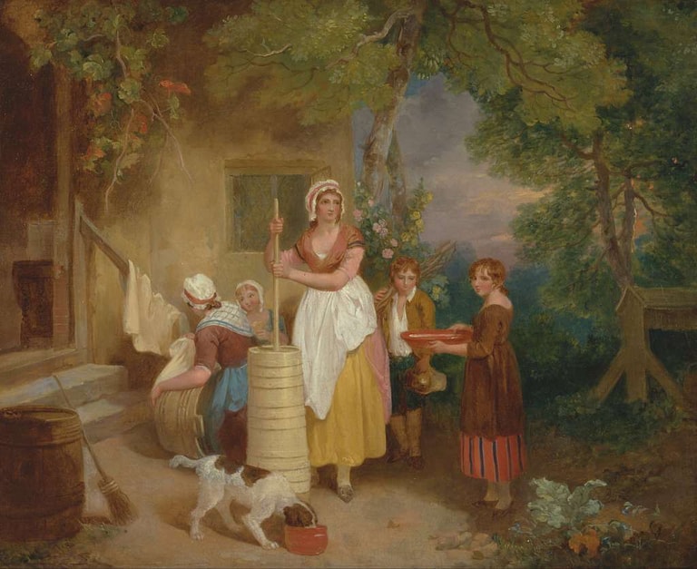 來自鄉下的農場的牛奶女工,在鄉間田野間工作、行走或休憩的場景,在十八世紀日益興盛的英國風景畫中經常出現,成為關鍵的點景角色。