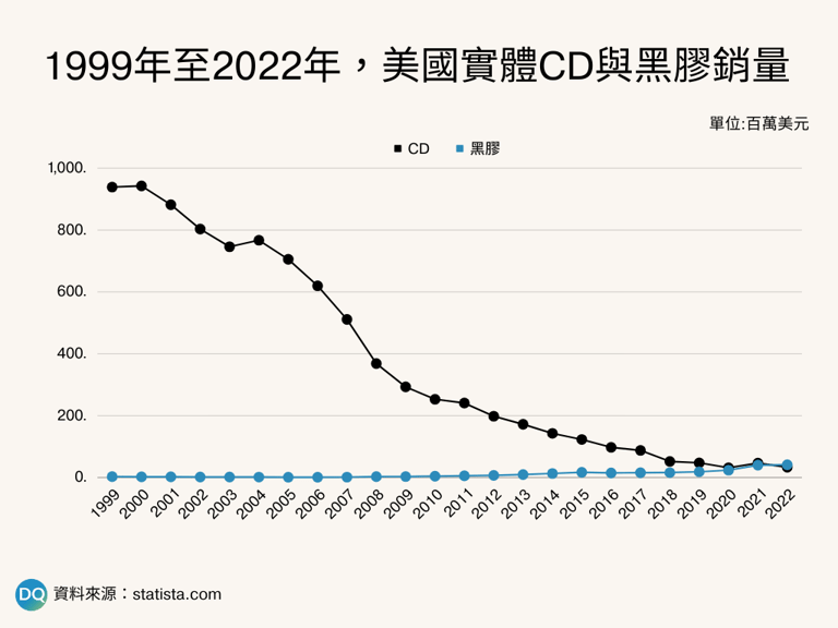 根據MRC Data數據顯示,雖然實體CD銷量自2000年的199億美金,衰退至2020年54.83億美金,但是2021年卻迎來奇蹟般的「迴光返照」。