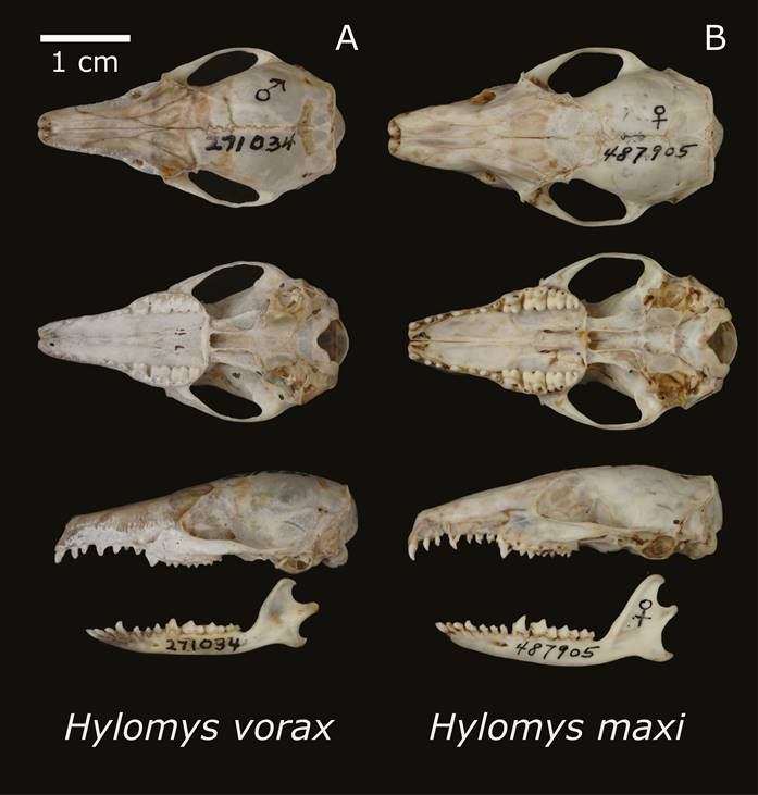 Hylomys vorax的體積較小,長約11.9公分,具有黑色的尾巴、吻部狹窄;Hylomys macarong則體型較大,長約13.9公分,牠們擁有深褐色的毛皮,以及類似獠牙的門牙,因此以越南文中的「吸血鬼」(ma cà rồng)一詞命名。