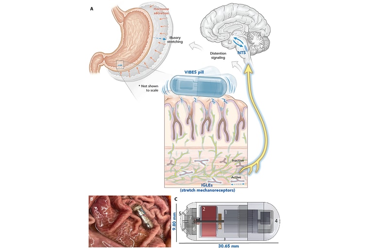 這種振動膠囊的原理是利用內源系統調節神經,以克服傳送生物製劑的挑戰和成本。它的作用機制是刺激胃壁的機械刺激感受器,透過迷走神經向大腦發送訊號,啟動多種激素,減少饑餓感並促進消化。