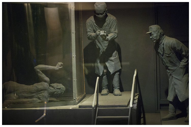 731部隊所設立的研究建築,包含了實驗室、監獄,以及各式培養鼠疫、傷寒、霍亂等工廠。而在這裡進行人體實驗的,大多數都是日本從頂尖大學徵召入隊的學者。
