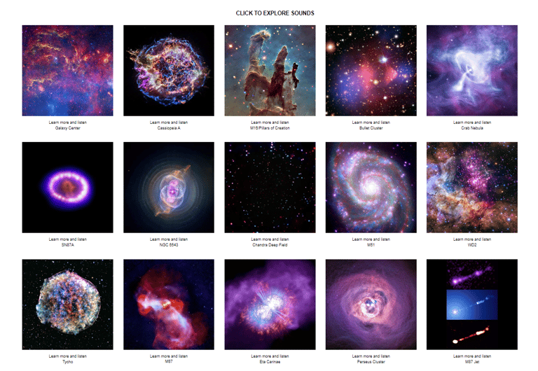 卡斯特納的合作夥伴、錢卓拉X射線天文台和史密森天文台(Smithsonian Astrophysical Observatory)的視覺化效果製作專家阿坎德(Kimberly Arcand)解釋:「我們只是將圖像進行數學映射,將這些像素轉化為可以聽到的東西……來自深空望遠鏡的數據最初是由1和0組成,紀錄的細節包括能量多寡,或是光子擊中望遠鏡的位置。 NASA之前就嘗試過用簡單的音頻《宇宙之聲》(Universe of Sound)將之呈現。」