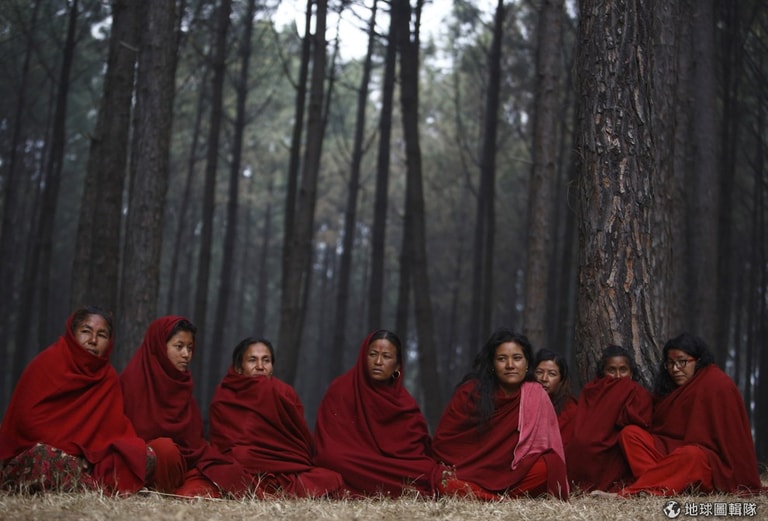 照片中的女性正值月經來潮期間,當地人認為女性在此時的狀態是不潔的,所以她們要與其他信眾分開祈禱。