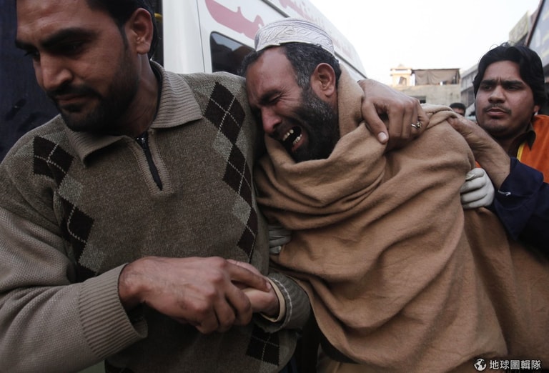 照片中的民眾得知親人受炸彈波及身亡,忍不住失聲痛哭,他的兄弟在戲院的手榴彈攻擊中不幸身亡,爆炸案共釀成10死16傷。這已經是當地第二起用手榴彈攻擊戲院的案件,此時巴基斯坦政府正與塔利班組織商討和平協議,爆炸案頻傳只讓這項談判蒙上陰影。