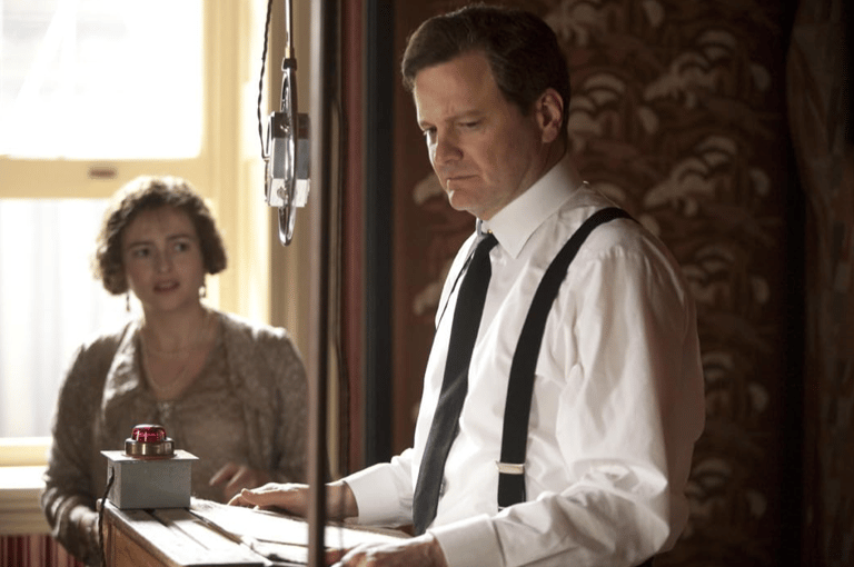 電影開場時,柯林・佛斯(Colin Firth)飾演尚未即位的喬治六世(時任約克公爵),正在溫布利球場為大英帝國博覽會(1924)發表閉幕演說。這場戲,觸動了許多害怕公開演講的人內心深處的恐懼、勾起難以忘卻的經驗:所有人等待他的發言,麥克風放大了每一個不成文字的喉音,過多的斷點也讓一個簡單的句子變得支離破碎。