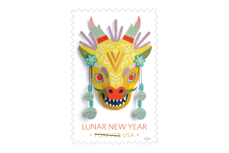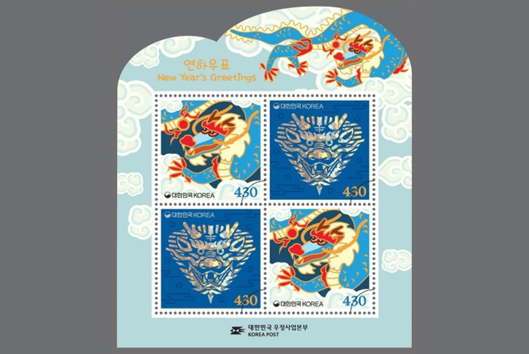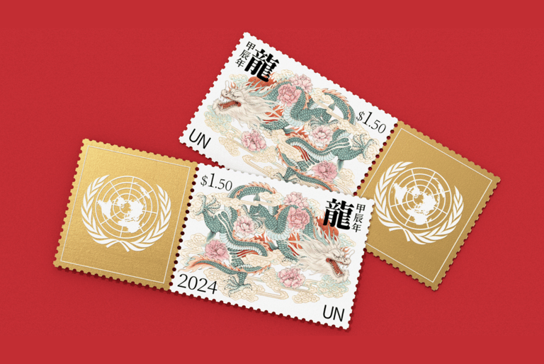 今年,聯合國郵政管理局再度與中國設計師潘虎合作,此次他延續虎年、兔年的風格,以細膩、精緻的筆觸描繪霸氣青龍,周邊並以祥雲、牡丹等素材點綴。潘虎提到,他希望藉由這份郵票,向全球華人傳遞新年的美好願景與祝福,並向全世界傳播中國文化。