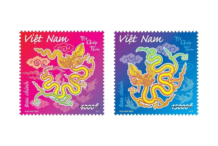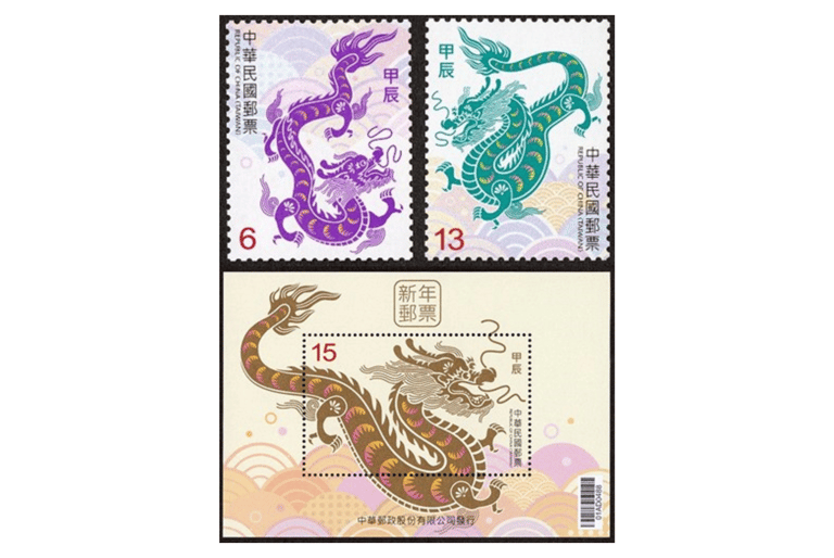 其中,面值6元的郵票上,是一隻全身紫色的飛龍,中華郵政提到,紫色的祥龍象徵尊貴、優雅,昂首迎接新年的到來;13元的郵票上,有著象徵著氣勢非凡的青龍,藉此祝福大家新年福壽雙全;15元的小全張郵票上,則是一隻「氣勢威嚴、拔類超群」的帥金龍,象徵新年運勢一飛沖天、鴻運高照。
