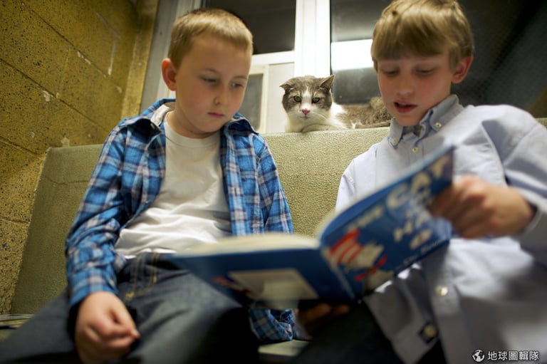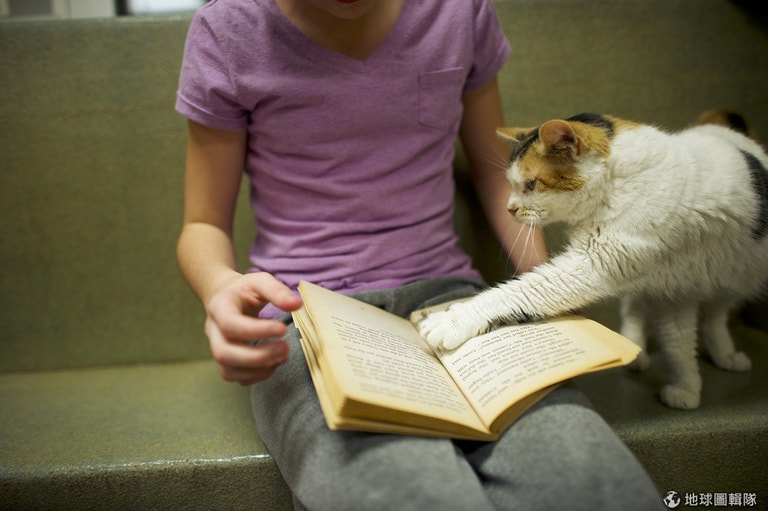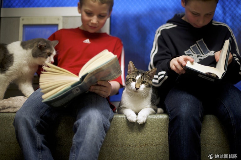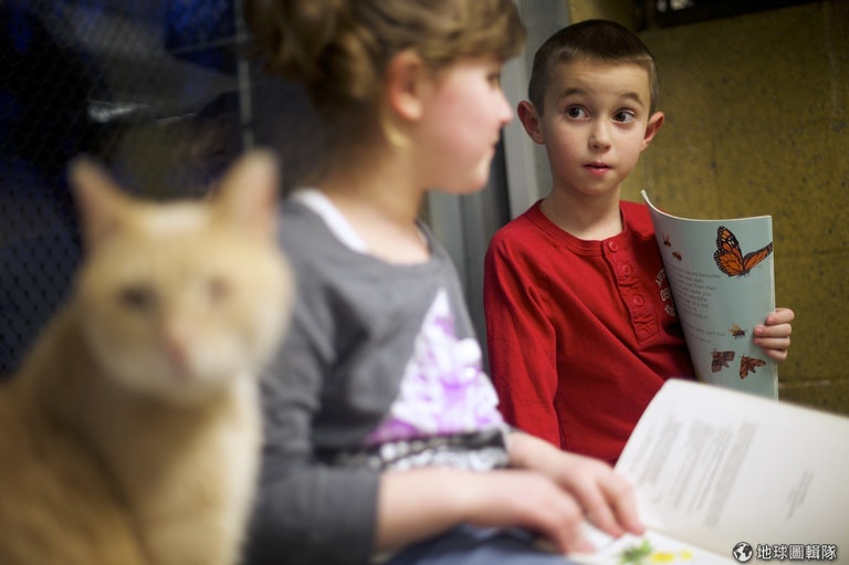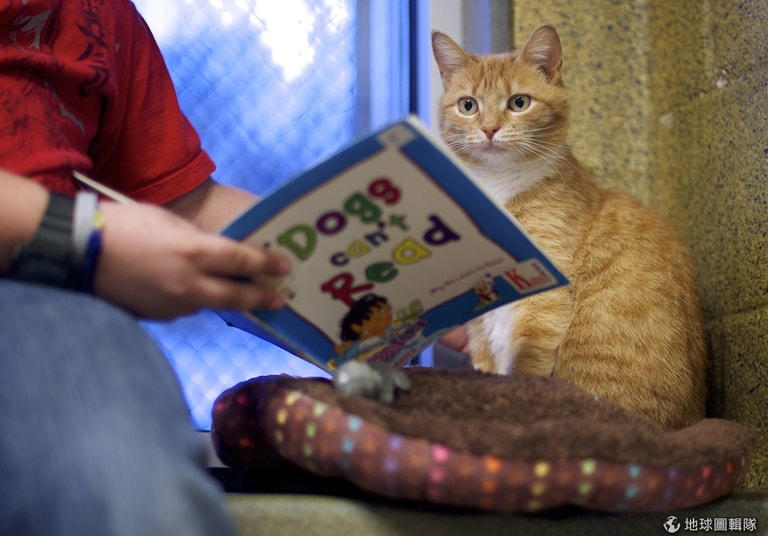 根據《時代雜誌》報導,最近歐美網路上瘋傳一張小男孩抱著橘子花貓的照片,也因為照片轉載的關係,大家注意到了一個特別的伴讀計畫──「讀書夥伴」(Book Buddies),這項計畫是由美國賓州的動物救援聯盟(Berks ARL)主導,計畫主要針對1-8年級的小朋友,讓他們唸書給流浪貓聽。