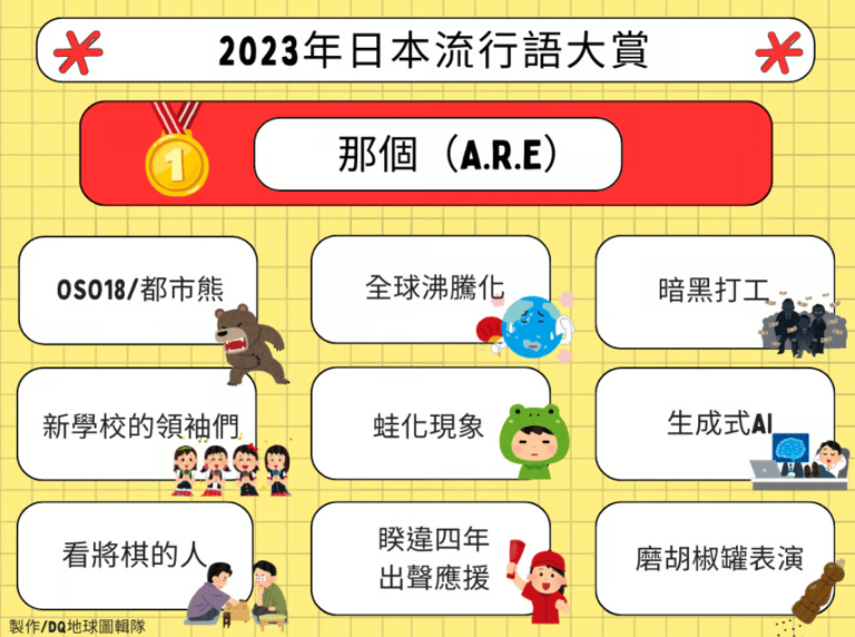 由日本出版社自由國民社主辦,票選出反映今年日本社會現象、引發話題流行語的「新語・流行語大賞」,於去年年底公布2023年的獲獎名單。