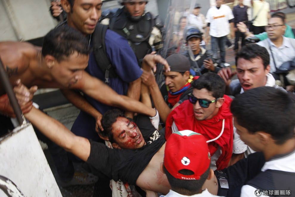 照片中一名滿臉鮮血、眼睛微張的反政府民眾被其他人緊急抬下車。委內瑞拉的首都卡拉卡斯在12號時出現大規模反政府示威,抗議過程中,進行採訪的《路透社》攝影師和記者聽見槍聲,他們當時發現有民眾倒下,之後目擊者對他們表示這位民眾頭部遭槍擊已經死亡。