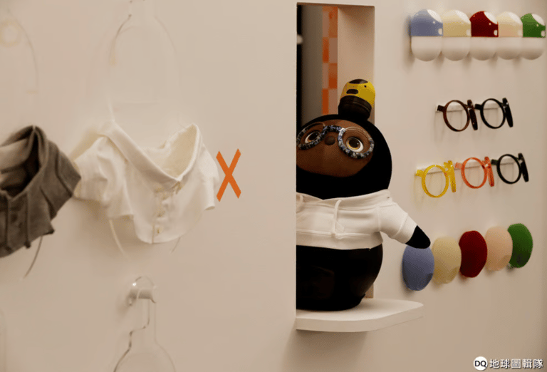 在東京的展示中心裡,展示台上的LOVOT穿著各式衣服和配件。製造商為機器人穿衣服的情況並不常見,但是在日本,許多機器人愛好者喜歡為機器人好好打扮。