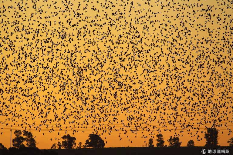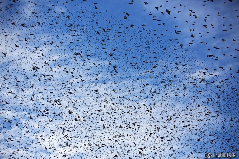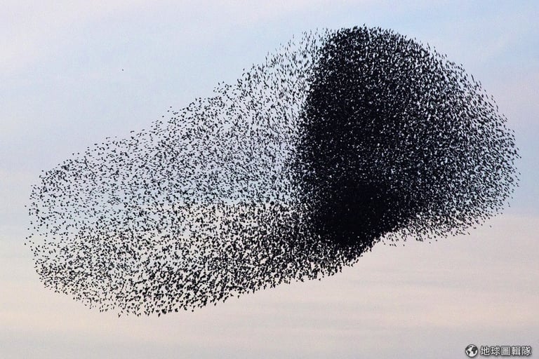 編註:根據《維基百科》,群行行為(Swarm behavior)是指一群實體聚集在一起兜圈或朝特定方向行動,在昆蟲、鳥類、魚類、水生動物、人與細菌身上都會出現這種集體動物行為,而「murmuration」這個字更特別指涉鳥類的群行。