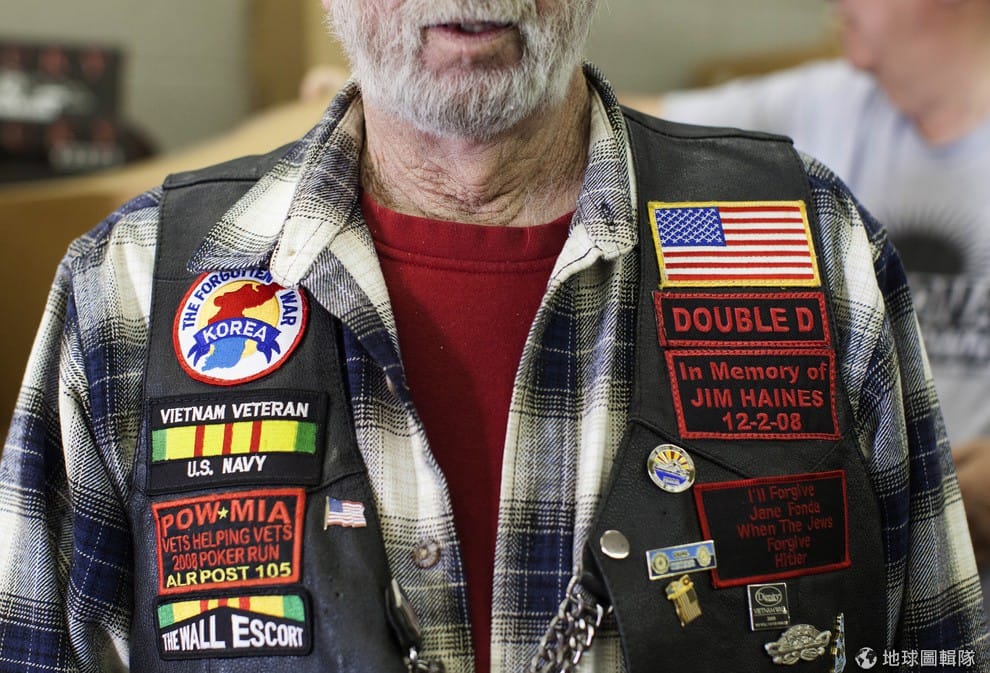 照片中不願意露臉的退伍軍官讓攝影師對著胸前的布章拍照,14號時,超過1500位無家可歸的退伍軍人接受70位民眾包含健保、衣著和法律等等的協助。