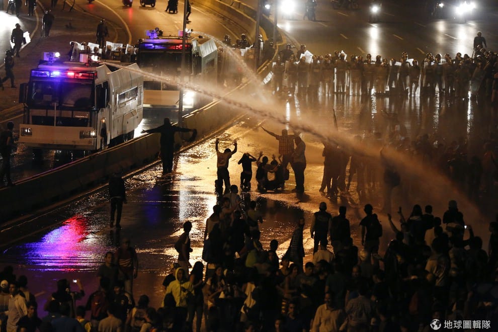 照片中的鎮暴警察用水槍驅散抗議民眾,他們聚集在首都卡拉卡斯的主要高速公路上,表達對現任總統馬杜洛(Nicolas Maduro)政府的不滿。當地政府在13號的示威活動上,逮捕了數十位學生。