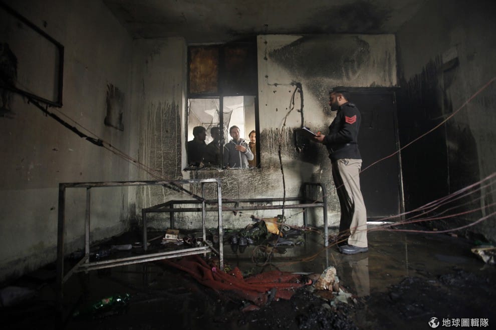 照片中的員警站在燒毀的旅館房間內,這邊因為兩個學生團體發生衝突的關係,遭到波及燒毀,這場事件也造成1位學生受傷。