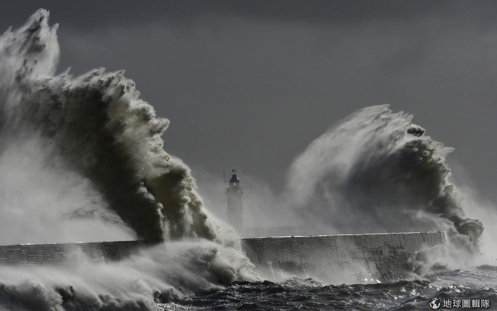 照片中的地點位在英國的英格蘭南方,大片浪花打上岸,碼頭上的燈塔就快被巨浪淹沒。英國近期光是一周內,就受到3個暴風雨侵襲,這在當地帶來狂風暴雨,更讓英國的降雨量創下紀錄。