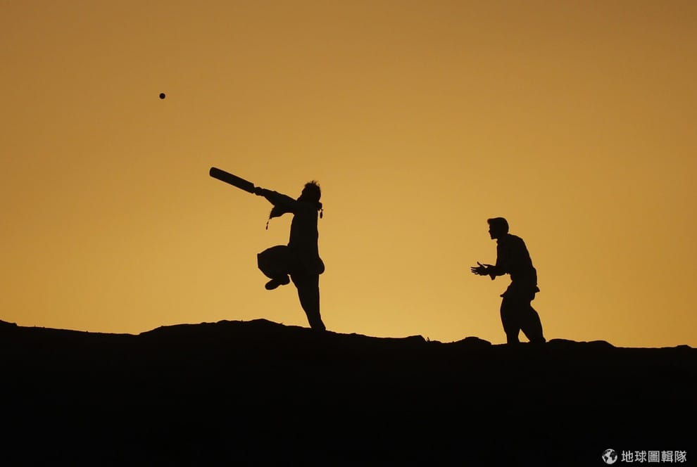 喀拉蚩當地,可以見到男孩們在山丘上玩著板球。