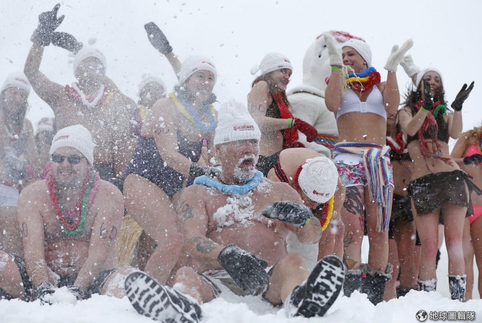 照片中是加拿大魁北克省的民眾,他們在寒冬中穿著清涼卻沒有因此減低玩樂興致,因為15號這天,號稱世界最大的「魁北克冬季嘉年華」再度來到。此外,魁北克冬季嘉年華在今年邁入第60周年,這讓這屆的活動更具意義。