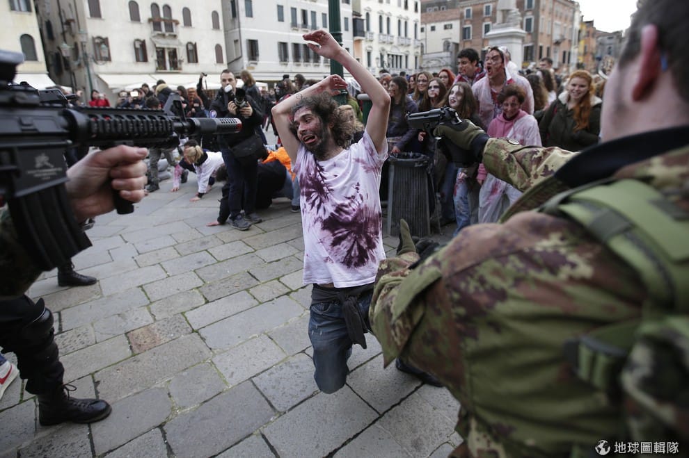 照片中是參加「殭屍大遊行」的民眾,他們這場遊行也是即將在下周22號開始的「威尼斯嘉年華」的一部分。2014年的威尼斯嘉年華將從2月22日開始,直到3月4日結束。