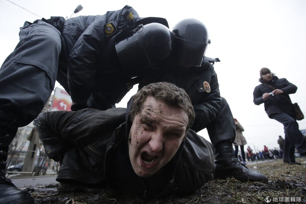 照片中的男子因為抗議政府把19世紀開始存有的公共財私有化的決定,在政府大門外抗議,他最後遭到政府部門的人員逮捕。