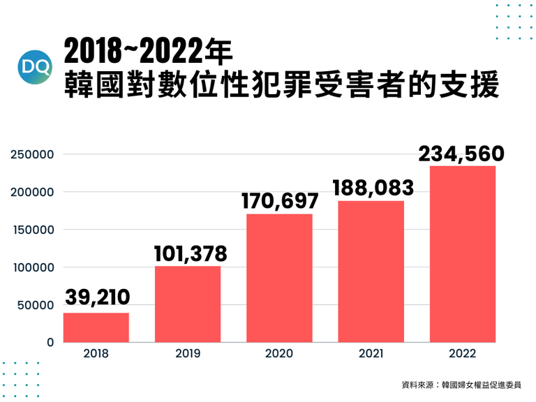 因受到數位性犯罪所苦而向政府相關單位求助的受害者,自N號房事件後人數年年新增,從2020年的17萬暴增至2022年的23萬。