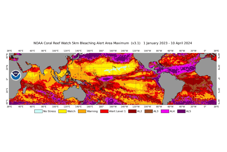 去年八月,全球平均海洋溫度打破歷史紀錄,此後幾乎每天都高於平均值,世界各地的珊瑚經受不起熱壓力,正在變白甚至死亡。據美國國家海洋和大氣管理局(NOAA)收集來自世界各地的科學報告得出結論,現在正在上演第四次全球大規模珊瑚白化事件。