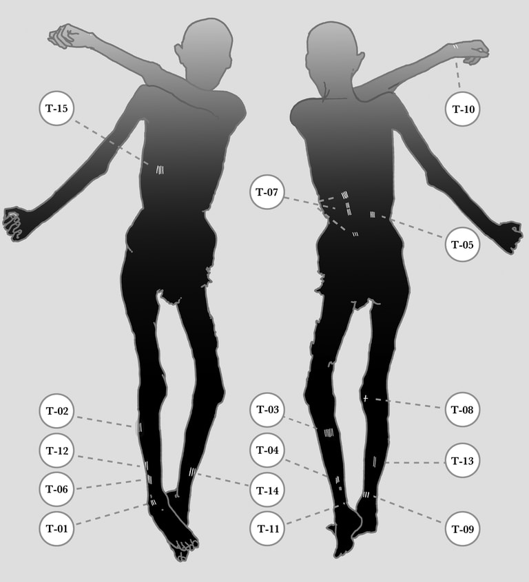 實驗結果指出,切割所留下的傷口,通常會是筆直的線條,傷口痕跡也較薄;且因為使用利器,傷口往往會呈錐狀,末端細長,圖案的邊緣也比較乾淨。然而,奧茲的紋身卻沒有這些特徵。