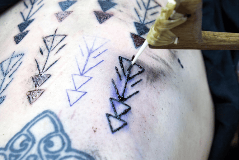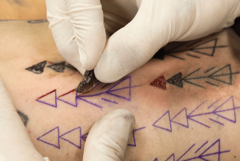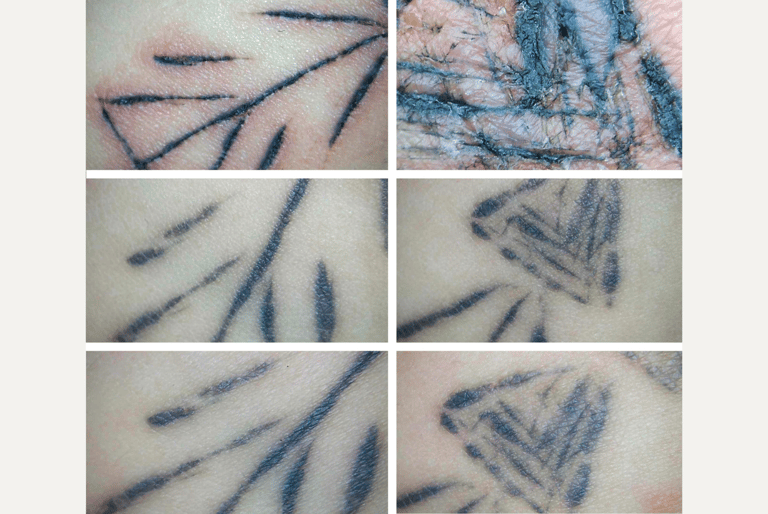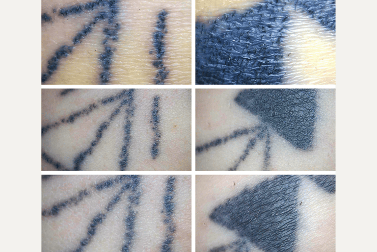 「每次刺青的工具穿透皮膚時,都會造成一個小傷口,而根據不同成因,每個傷口都有其獨特的特徵。」