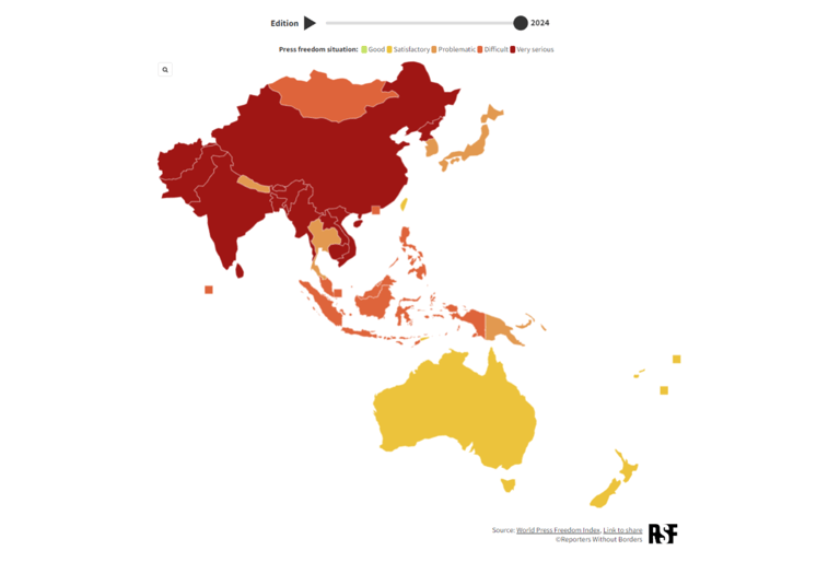 不過,無國界記者組織也點出,亞太地區仍存在許多「新聞自由典範」,例如紐西蘭、東帝汶、薩摩亞與台灣,皆維持良好的新聞自由環境。