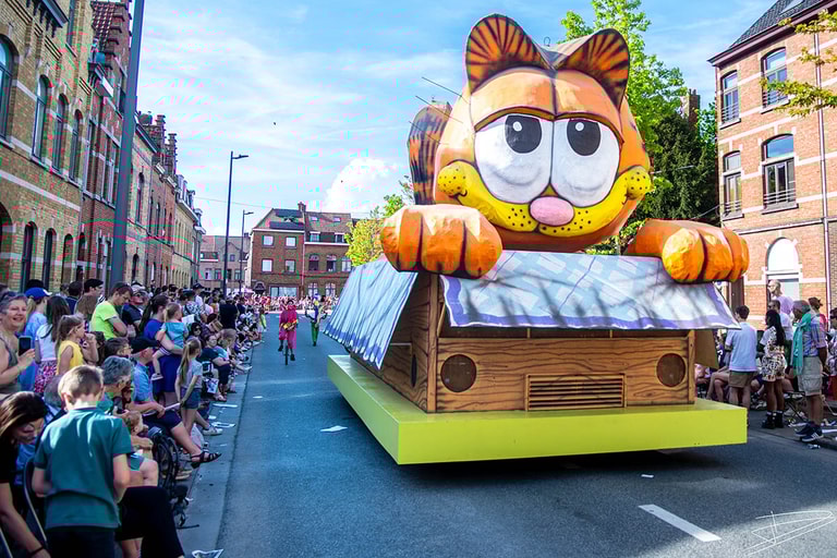 另外,有些遊行花車以伊珀爾的歷史為主題,有些則展現傳說、典故或流行文化中的貓咪,包括大眾熟知的加菲貓,也加入遊行的行列!
