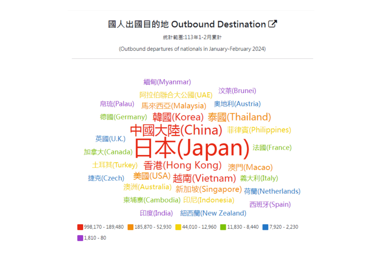 對於今年的旅遊熱潮,國際旅宿平台Airbnb日前發布的旅遊趨勢預測,2024年第一季至第三季與2023年同期相比,全球共有10個國家及地區在Airbnb上的搜尋次數大幅增加,榜首由日本奪下,台灣國際熱搜年增率登第二名,顯示今年旅遊熱度還在。