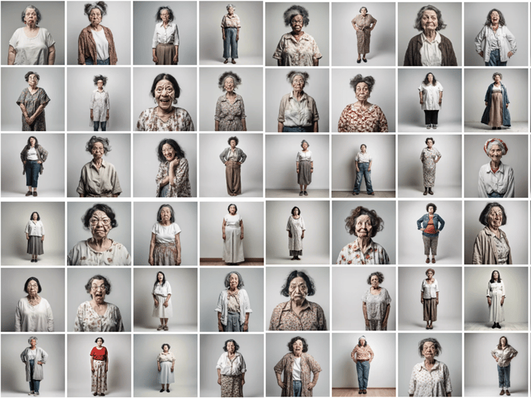 其實細看其中,還是可以發現如果使用「普通女性」的指令,生成的圖片確實會顯示出「老化」的跡象——近40%的圖片中有皺紋或灰白頭髮。AI藝術家阿布蘭馬爾多納多(Abran Maldonado)表示,
