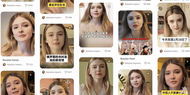 洛伊克不只發現一個帳號盜用了她的臉,當她翻遍Bilibili、小紅書、抖音等中國社群媒體,一共發現有35個帳號使用她的臉宣揚中國與俄羅斯,追蹤人數從1000人到15萬人不等,共計發布超過4900支影片。
