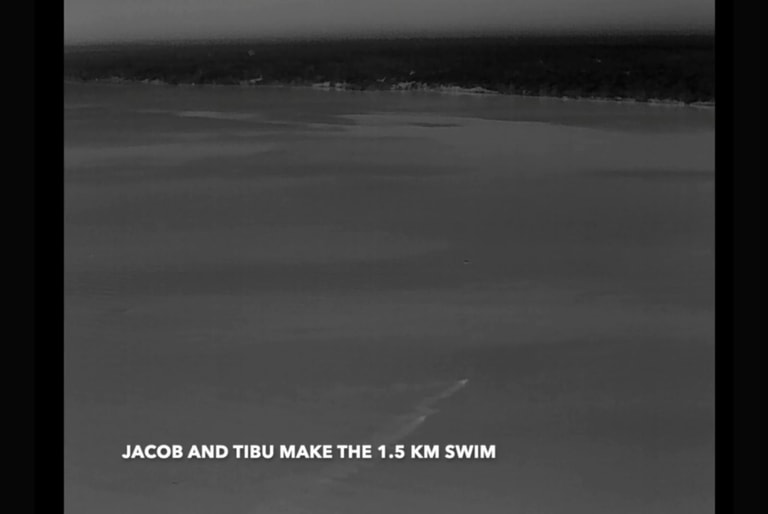 在黑暗中,牠們數度游進卡辛格運河中,卻受到阻礙折返回岸邊。其中一趟路程中,相機在兩隻獅子附近捕捉到另一個大型熱源,很可能是河馬或鱷魚正在追趕牠們。雅各與提布只好兵分兩路,分別逃回岸上。