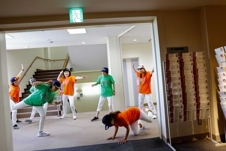 現在,在每個月兩次的課程中,學員們都會聚集於舞蹈教室,學習霹靂舞的各種舞步,包括搖滾步、定格動作和地板動作。「當你看到自己擺出這些滑稽的姿勢,會忍不住笑出來。」丸山玲子笑著表示,