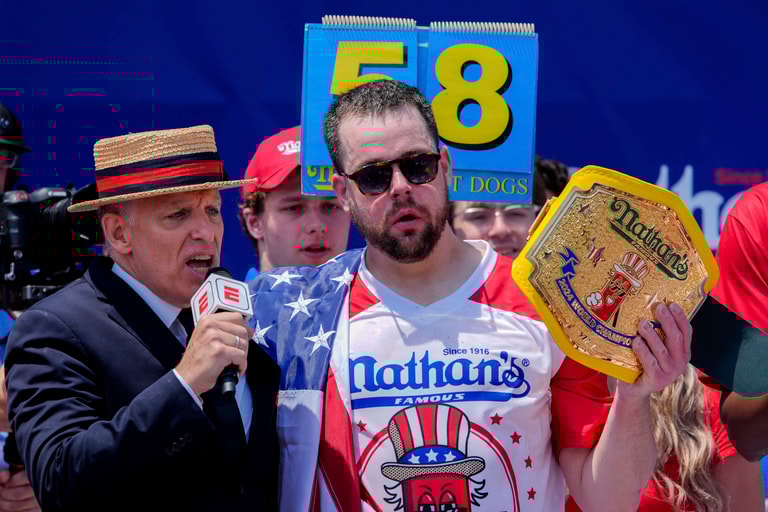 在美國獨立日這天,伴隨著國慶的熱鬧與歡樂,還有另一件年度盛事也在萬眾矚目下登場——納森吃熱狗大賽。每年,數萬名觀眾冒著炎炎夏日,聚集在康尼島海灘,目睹選手們在10分鐘內狂吃熱狗的壯觀場面。