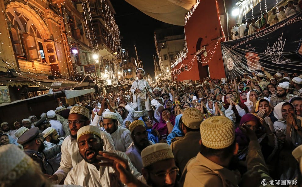 照片中信仰伊斯蘭教的達烏迪博拉人(Dawoodi Bohra)聚集在一塊,他們前一任穆斯林精神領袖柏罕努丁(Syedna Mohammed Burhanuddin)逝世後,信眾們在19號這天合掌歡迎新任精神領袖沙福丁(Syedna Mufaddal Saifuddin)