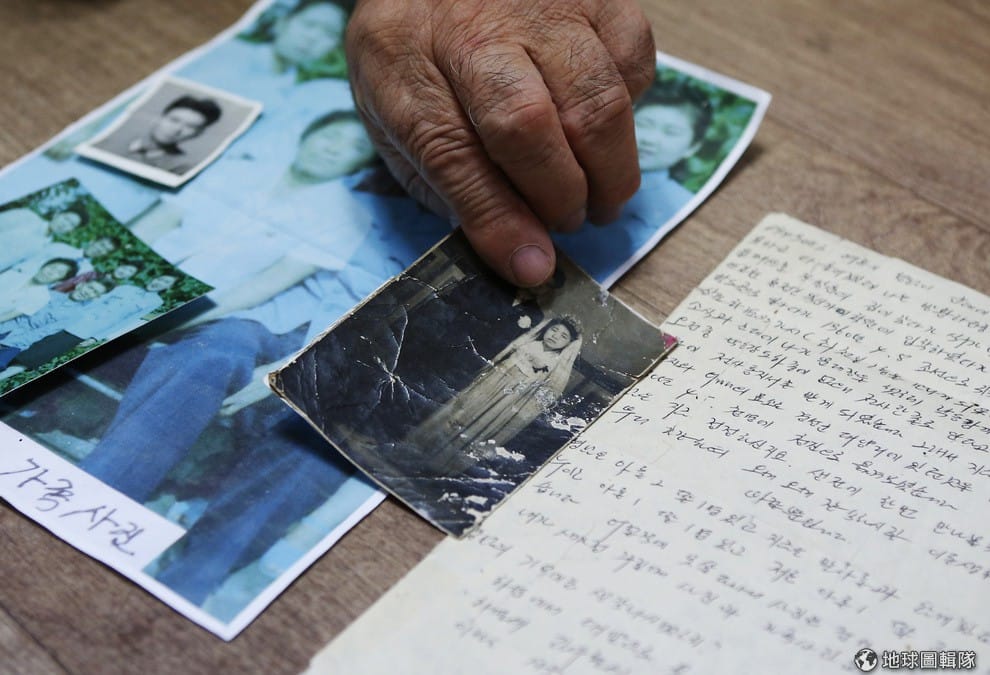 照片中的手指著桌上親人的照片,這只手的主人是現年80多歲的張椿(Jang Choon),他是南韓當地允許可以和親友見面的82位候選人之一。19號這天,他表示就要和照片中已經60年未見的弟弟張哈椿(Jang Ha-choon)重逢。