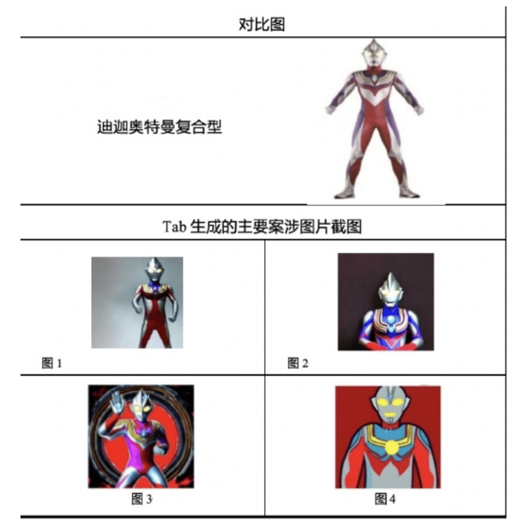 截自2024年8月,日本國內尚未出現因AI侵害著作權或版權而對簿公堂的例子,但根據中國《21世紀經濟報道》報導,中國某人工智慧公司,提供具有AI生成繪畫功能的網站「Tab」(化名),只要輸入「生成一張超人力霸王」或是使用付費加值服務,就能額外生成「超人力霸王合成美少女戰士」等圖片,且生成出的AI圖片形象幾乎與原作毫無二致。