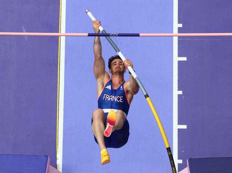 提到此次奧運的經典場景,相信不少人都會想到這場撐竿跳比賽。在男子撐竿跳高的預賽時,法國選手阿米拉蒂 (Anthony Ammirati)跳躍過桿的瞬間,卻因未測量好距離,不慎碰撞到下體導致失敗。