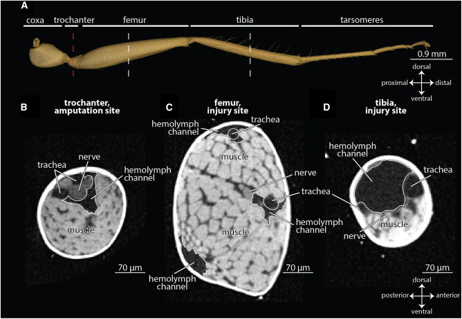 螞蟻身上的傷口,有些位於較靠近軀幹的「股骨」,可以想像成人類的大腿;有些則在靠近末梢的「脛骨」上,相當於人類的小腿。隨後,他們再讓一部分受傷的螞蟻獨自隔離,另一部分則回到螞蟻同伴身旁,觀察受傷的佛羅里達木匠蟻回到巢穴後,會得到什麼樣的傷口處理。