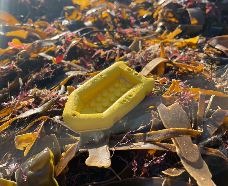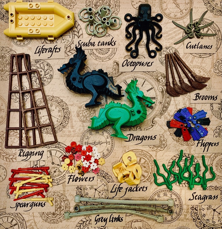 有趣的是,這批流入大海的樂高零件,主題大多與「海洋、航海」相關,包括五顏六色的章魚、鯊魚、海草、蛙鞋與救生衣。民眾在沙灘上,可能會在雜亂的樹枝、海草間,發現小小的綠色塑膠海草,或是擱淺的迷你黃色救生筏。